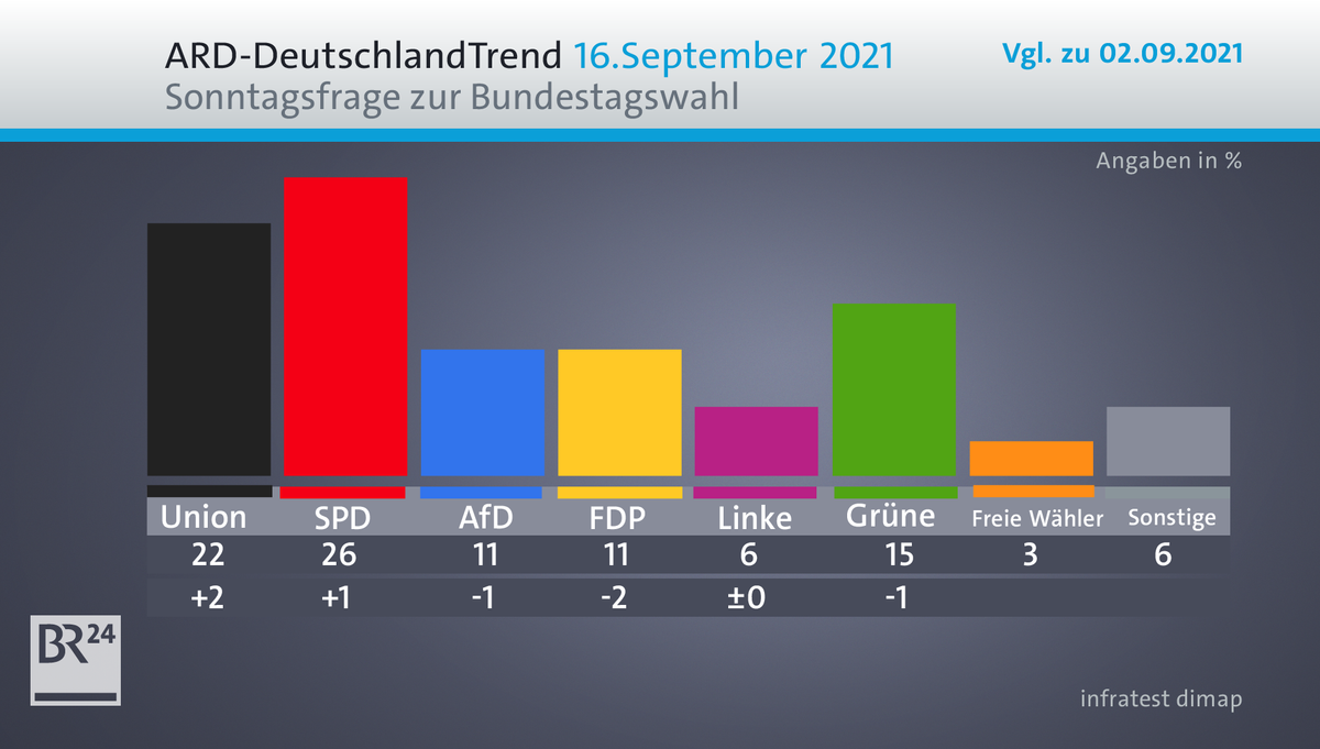 Natürlich kann sich in den nächsten 35 Tagen bis zur Bundestagswahl 2021 am 26. Artikelsammlung von n-tvde zum Thema Wahltrend. DAWUM - Neueste Wahlumfragen Aktueller Wahltrend zur Bundestagswahl.